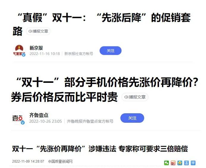除宏观因素外,消费者肖敏告诉我们,从去年开始自己就已不在电商大促期间购物了。“先涨价后降价”、“各类优惠券叠加”,不知何时起,电商平台的大促不再是单纯的购物,而是变成了一道难度极高的数学题。但即使自己费尽心思计算,最终购买到商品的价格还可能比非活动期间的价格要高。