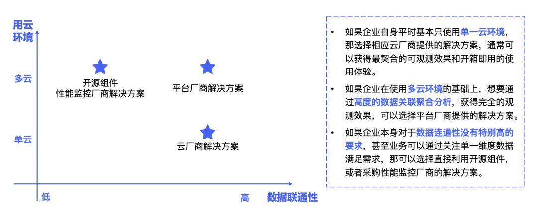 同时企业也需要理清自身对于可观测体系的需求。从实际需求出发,考虑本身对于数据连通性和用云环境的要求,不要为了建设可观测性而建设可观测性。