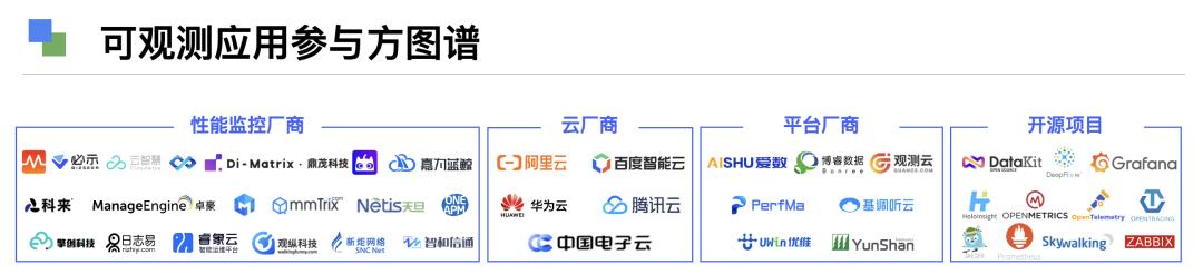 目前四类主要参与方已经陆续发布相应的可观测性解决方案或者开源项目。这意味着企业可以根据自身特点与需求,搭配合适的解决方案,构建贴合需求的可观测体系。