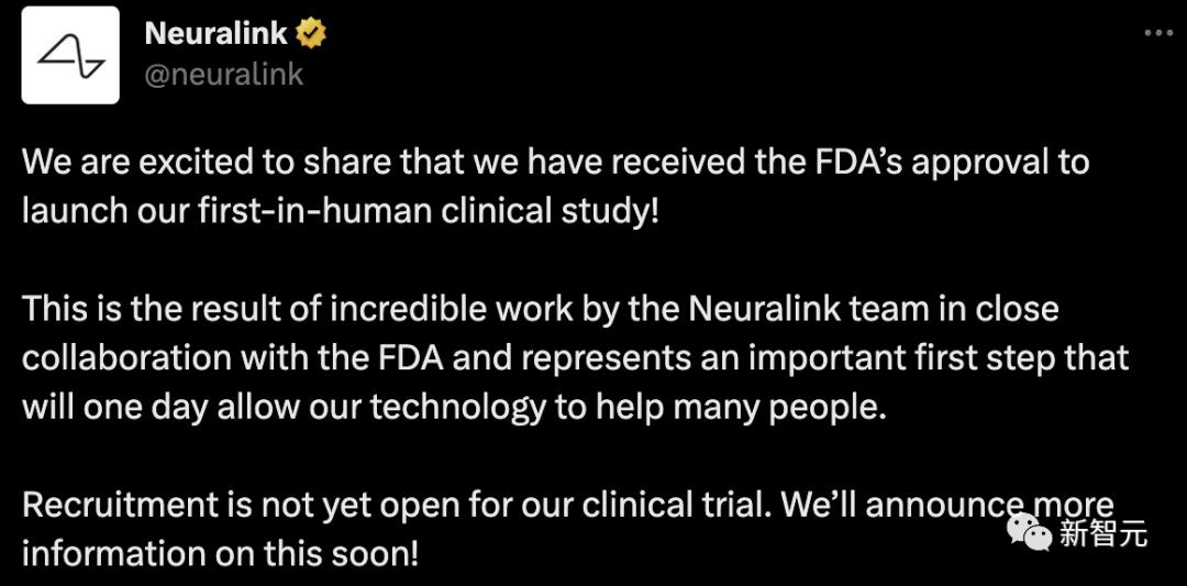 不过,虽然FDA已经批准,但Neuralink表示还没有开放临床试验。