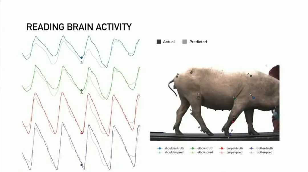 Neuralink 展示了一只在脊髓中有植入体的猪。原理是拦截大脑的运动指令,并将其分流到腿部,来实现目标动作。同样的,来自四肢的感觉信号也可以被发送回大脑,这样大脑就知道发生了什么,通过这样来模拟身体运动过程。