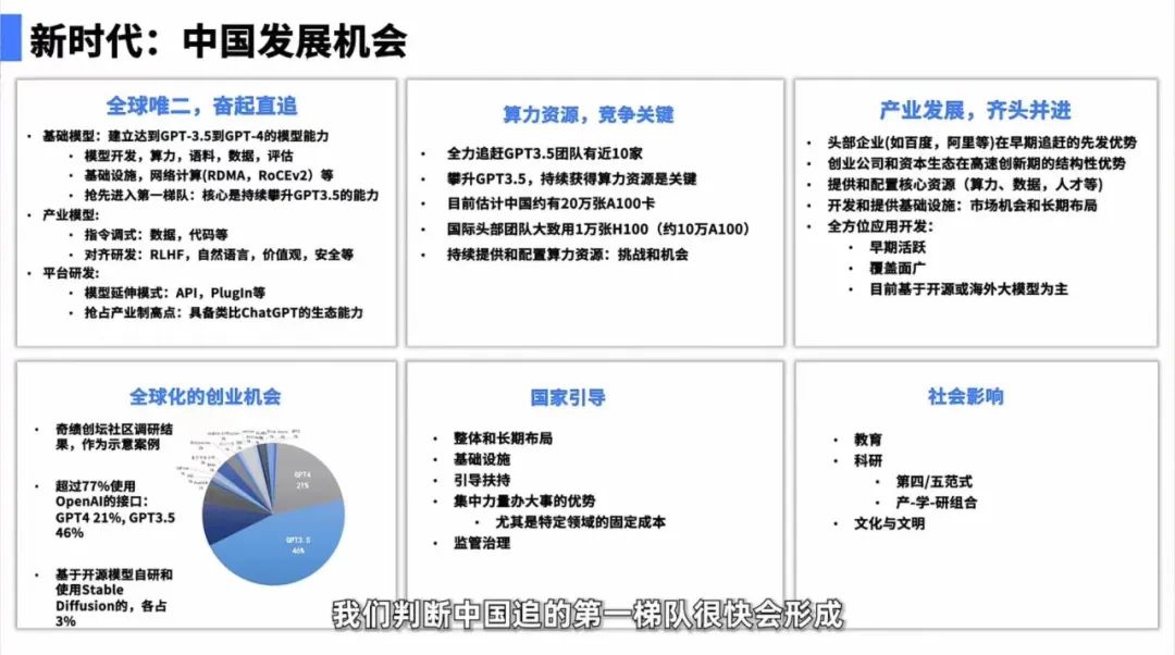 根据奇绩创坛创始人兼 CEO 陆奇在本月一场演讲中透露的信息:中国目前约有 20 万张 A100 芯片,全力追赶 GPT-3.5 的团队有近 10 家。而国际头部团队大致使用 1 万张 H100 芯片(相当于 10 万张 A100)。BAT 与 OpenAI 之间,算力资源目前差距还较为显著。