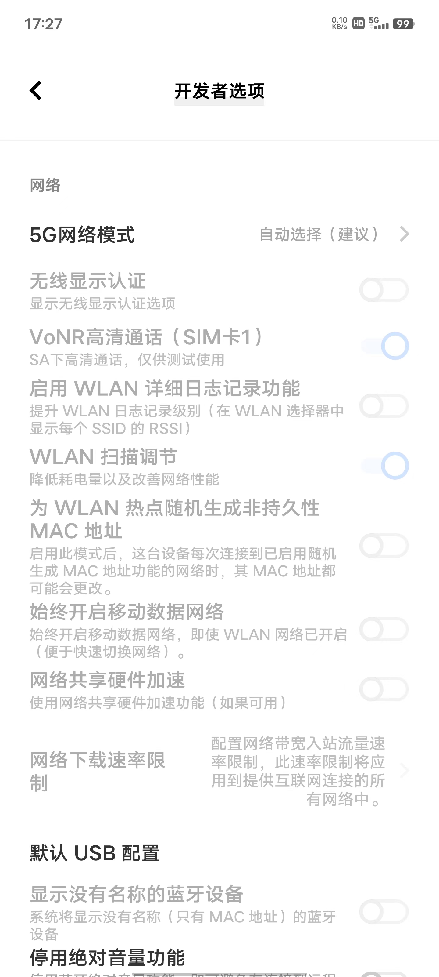 目前来说,VoNR尚未实现全覆盖,但运营商仍在不断推广,2023年还会更大的力度。终端支持方面,现在绝大部分国产安卓机均支持VoNR,基本可以在开发者模式中直接开启。