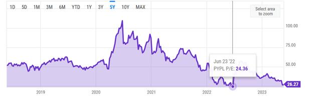 PayPal PE (YCharts.com)