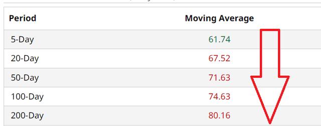 毫无疑问,PayPal的股票在技术上也处于低迷状态,随着我们从 200 天一直移动到 5 天,移动平均线越来越差。这表明该股尚未触底,可能还有更大的下跌空间。