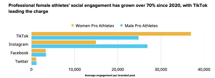 自2020年以来,女子职业运动员社交互动量增长了70%以上,其中Tiktok扮演了最重要的角色。