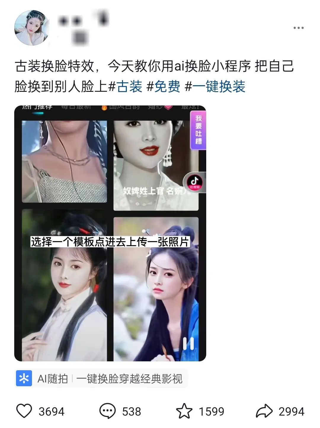 甚至,网络上已经出现了专门的 AI 换脸教程……俨然成为了新的流量密码。