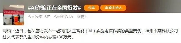 腾讯网:AI 诈骗上热搜!长相声音都对,“换脸”的“朋友”骗了他430万…