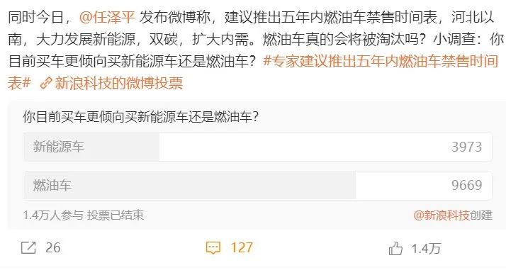 不过,燃油车是否退出,一直有争议,有经济学家在社交媒体发文称“建议推出五年内燃油车禁售时间表。”不少网友表示反对。