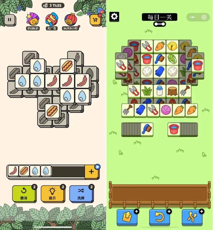 《3 Tiles》和《羊了个羊》的UI界面