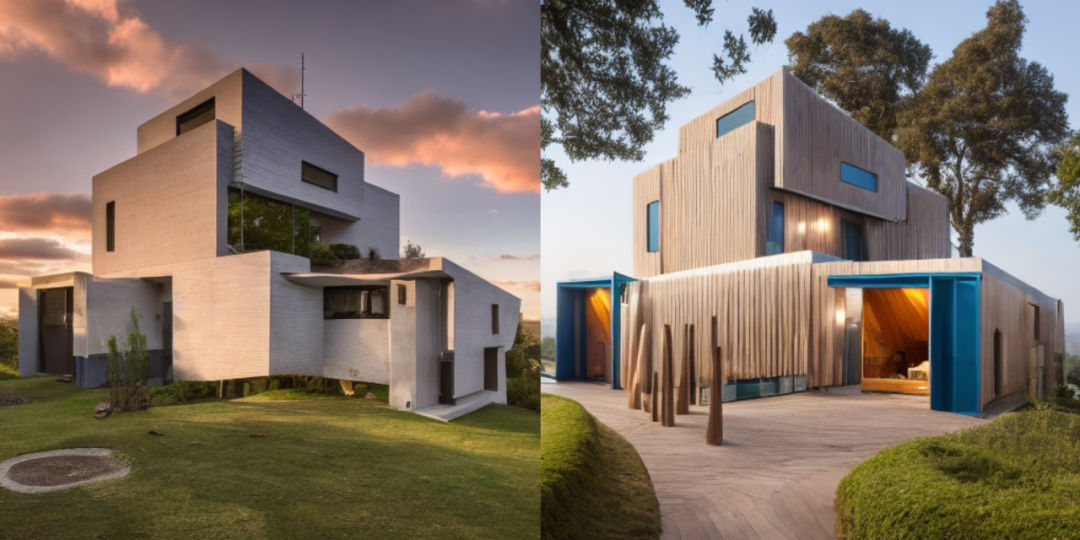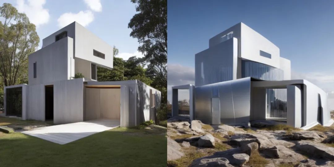 左:“安藤忠雄”大师风格的生成图,右:“扎哈·哈迪德“大师风格的生成图