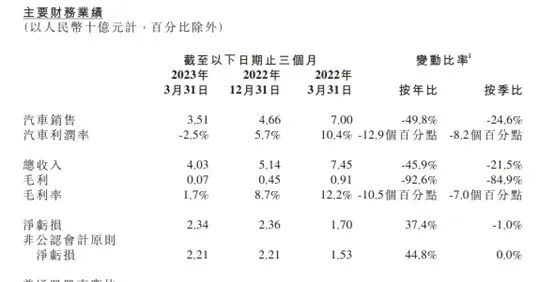 王凤英的空降小鹏汽车也因此备受关注。但王凤英加盟小鹏汽车后的首份季度财报,并不理想。根据财报,小鹏汽车在第一季度汽车总交付量为18230辆,较2022年第四季度的22204辆下降17.9%,这与年初定下的目标相差甚远。第一季度,小鹏汽车来自汽车业务的营收为35.1亿元,同比下降49.8%,环比下降24.6%。