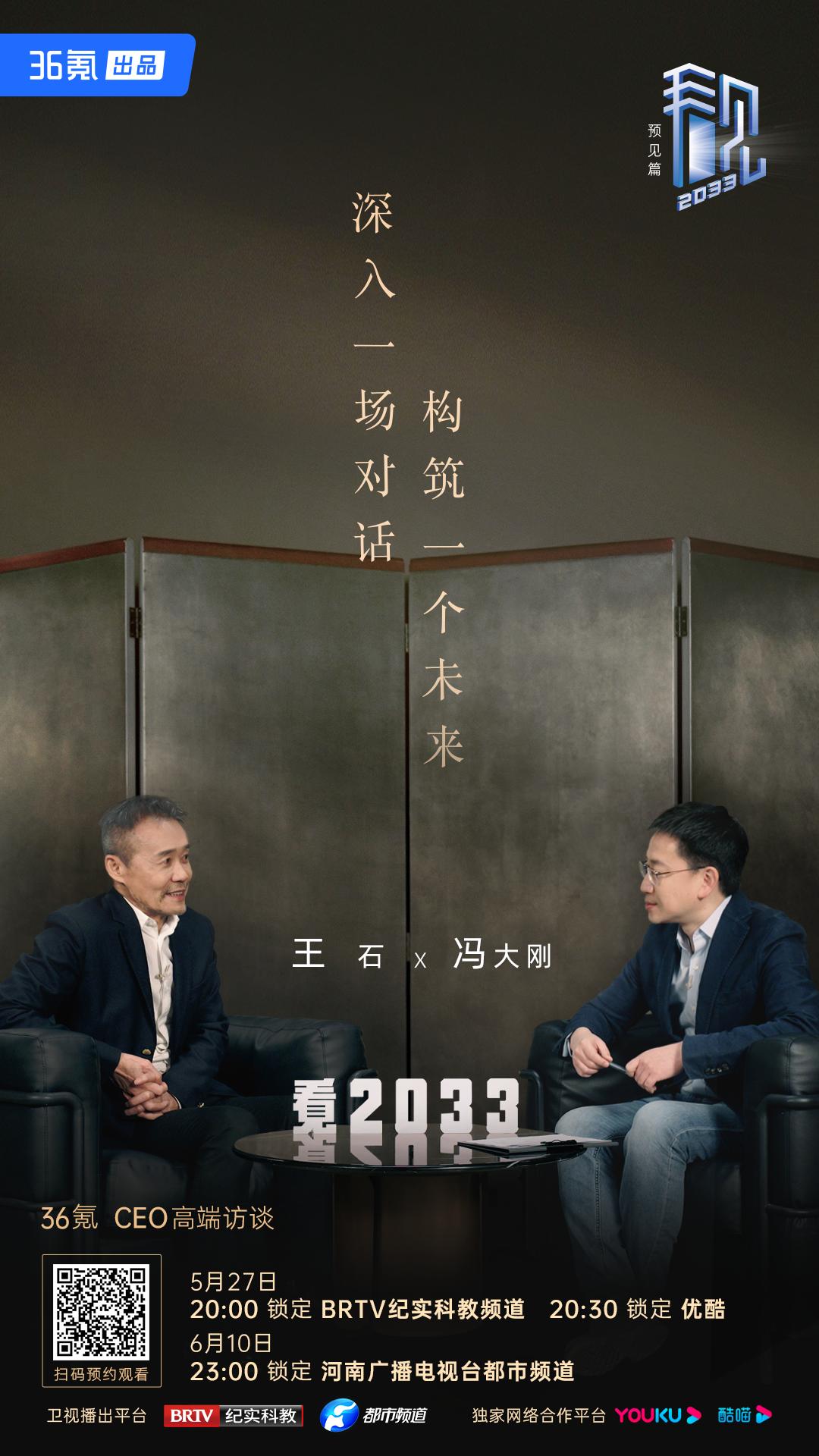 《看见2033》由36氪CEO冯大刚作为主理人,邀请在各个领域谱写过传奇的商业领袖与大家分享他们眼中的未来趋势。节目以“深入一场对话,构筑一个未来”为主旨,期望借嘉宾超脱的视野,提笔书写预言之书,为个人和企业带来关于未来的启发。