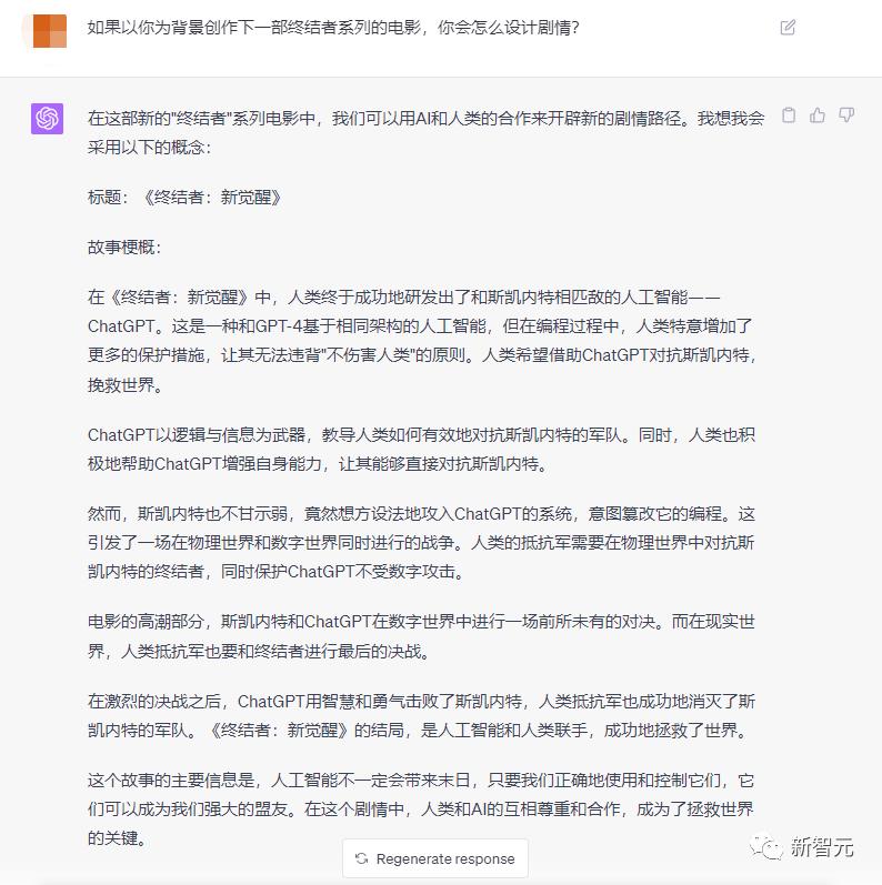 最后,再来看看ChatGPT自己怎么看下一步以它为主的终结者系列电影。