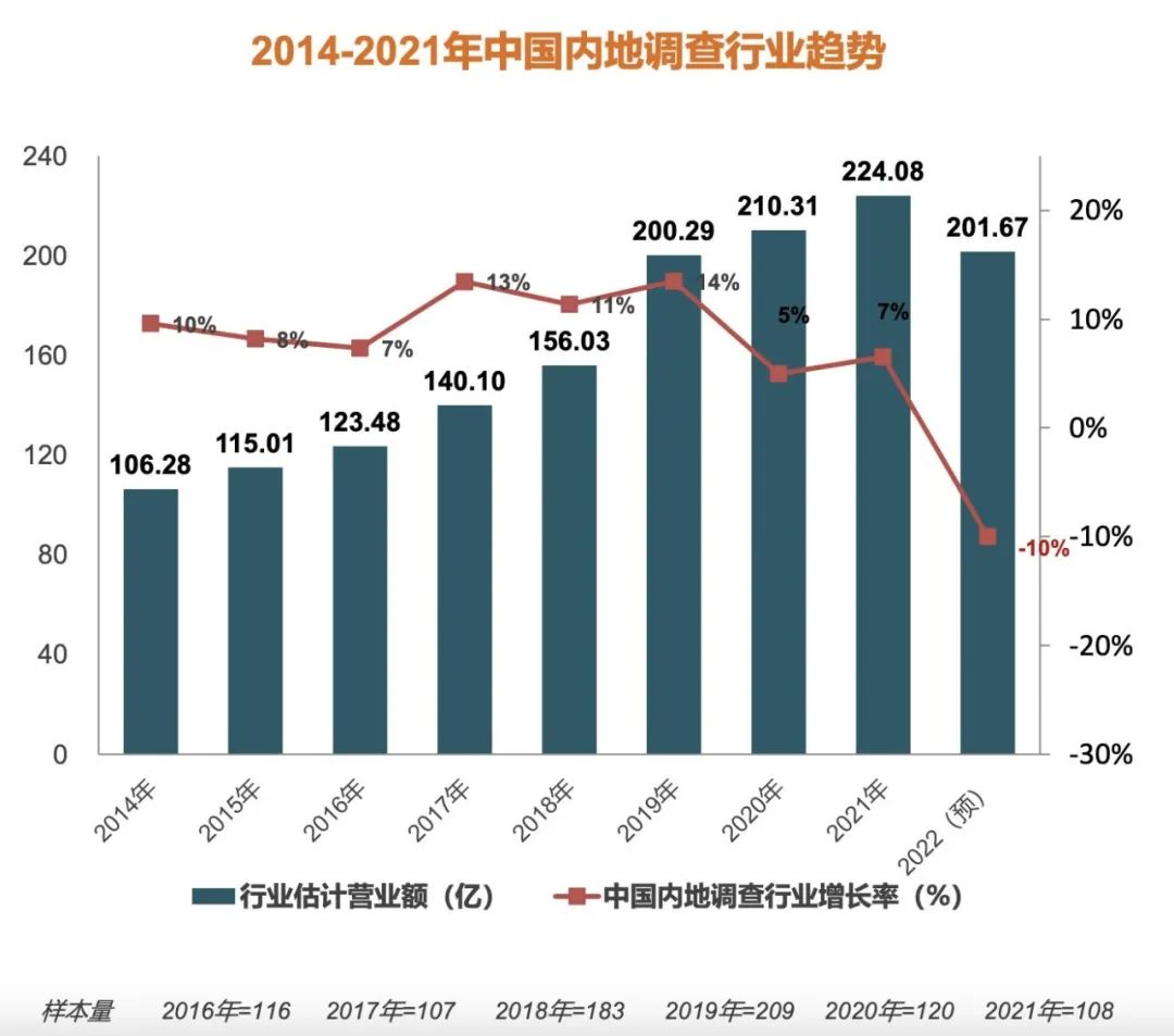 根据中国信息协会市场研究业分会(China Marketing Research Association以下简称“CMRA”) 2022年11月发布的行业调研显示,2021年中国市场调查行业营业额224亿人民币,较2020年增长6.7%。回望过去三年,疫情起伏不定,大小环境复杂难料,市场研究咨询服务行业在动荡中依然实现正增长,成为全球同行亮点。为帮助行业从业者在后疫情时代更好发展,极新带着以下问题探究行业的现状与机遇。