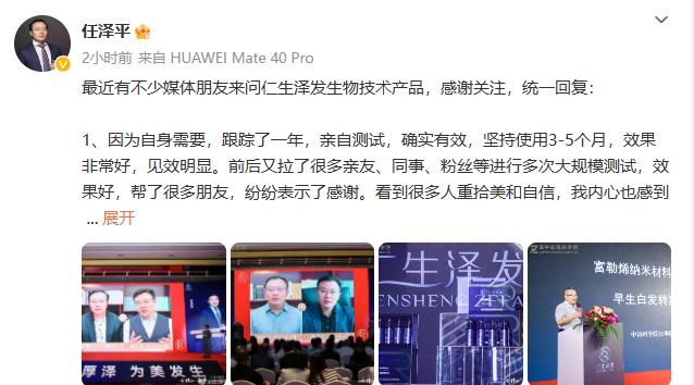 面对大家的各种疑问,5月30日,@任泽平微博回应称,这次进军实业和生物技术领域,初心是帮助更多的人,独乐乐不如众乐乐,让我收获的喜悦分享给更多人,帮助更多人,尤其看到身边的朋友被头发困扰,带来的不自信和不开心。我们的价值都取决于对他人的价值,我深信只要我们为他人创造价值,就能实现自身价值。