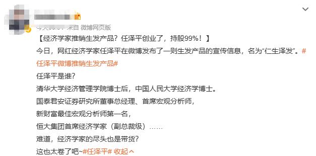 根据任泽平的微博显示,任泽平为上述生发产品宣传已经铺垫数月之久。