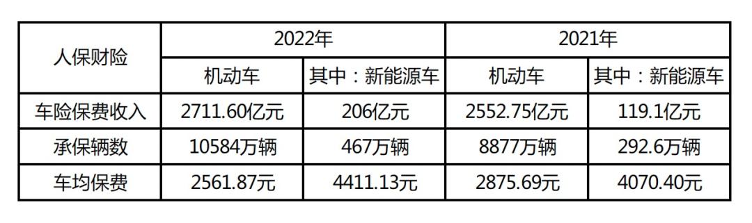 此外,从人保财险年报和偿付能力报告中也可以看到相似的现象。新能源车险业务方面,2022年人保财险共承保467万辆新能源车,保费收入206亿元,车均保费为4411元,远高于2561.87元的总体车均保费水平。