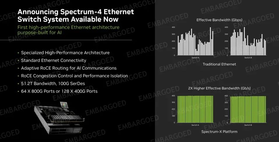Spectrum-4以太网交换机提供具有2倍性能的无损以太网。图片来源:英伟达
