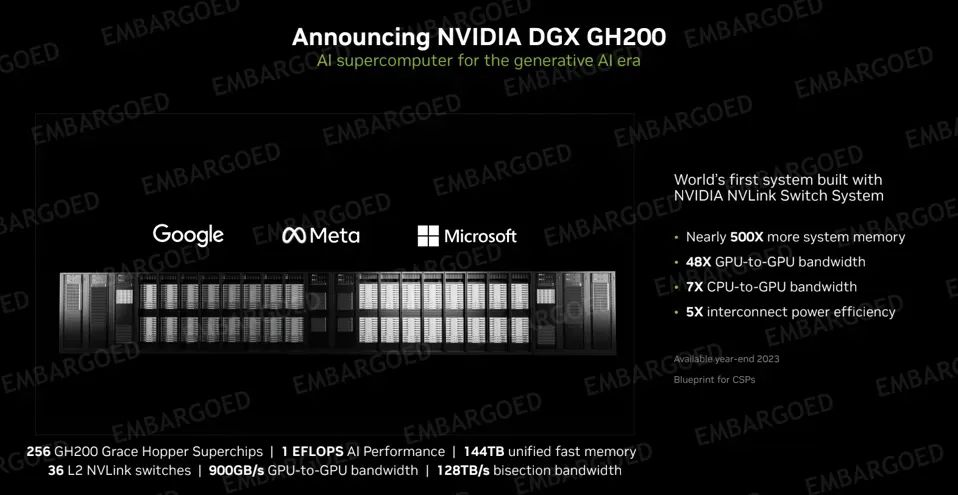 虽然英伟达(Nvidia)发布了从AI超级计算机到可以进行对话的游戏角色的产品,但我们将重点关注直接影响AI的三种技术:基于Grace Hopper的256-GPU GH200,面向系统构建者的MGX平台,以及将所有这些联系在一起的全新Spectrum-X以太网网络。