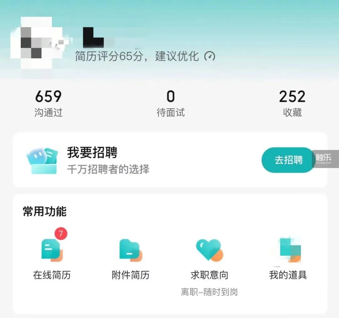 张照在招聘软件上的个人主页