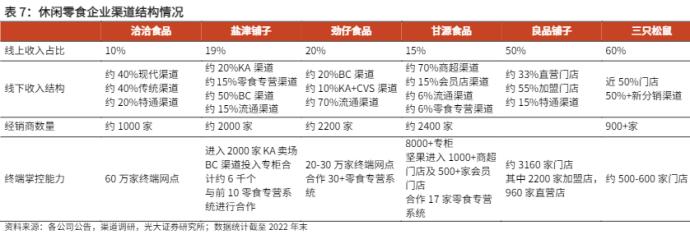 例如,盐津铺子在淘宝、抖音直播带货,推出19.9元70包的辣卤大礼包,迎合消费者需求,2022年单月GMV表现已有明显环比改善。甘源食品在引入新的电商总监后,积极布局线上直播、社区团购等业务,2022年占比已达15%。