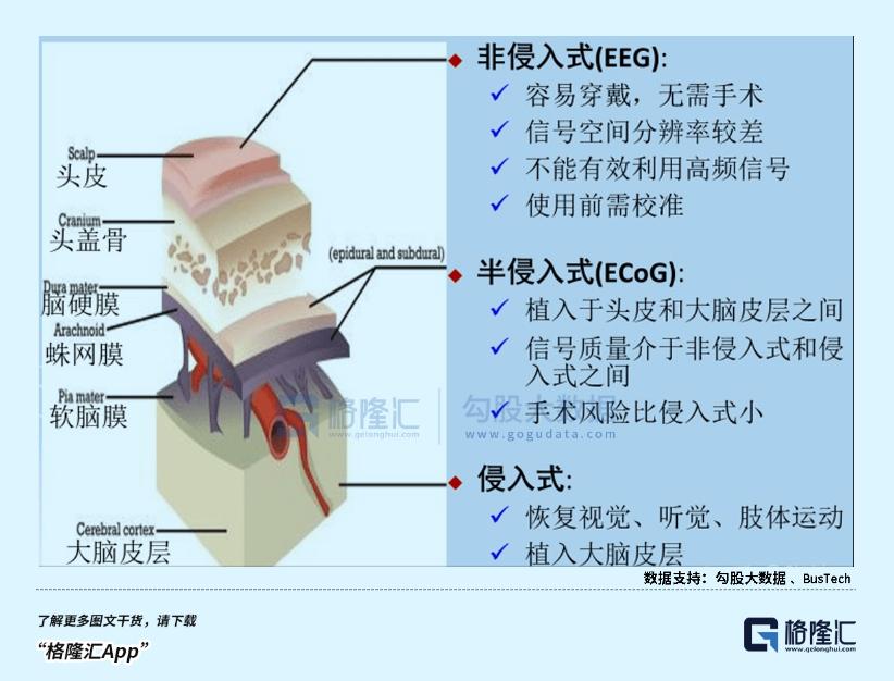 对应着两条技术路线:需要开颅放置的“侵入式”;仅需放在表皮的“非侵入式”。