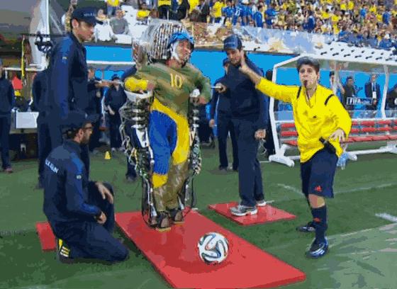 早在Neuralink成立之前,在 2014 年巴西世界杯上,佩戴外骨骼的截肢残疾者,就凭借脑机接口从轮椅上站起来踢了第一脚球。