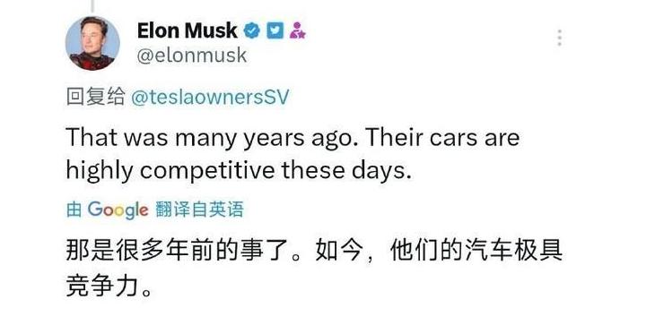 就在前几日,马斯克又在个人社交平台,亲自回应了之前对于比亚迪“嘲笑”的视频,“那是很多年前的事了,他们的新车现在竞争力很强”。