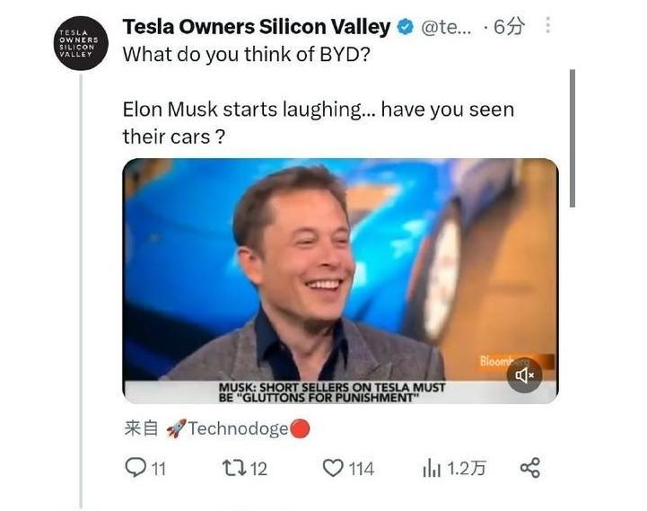 马斯克回应多年前“嘲笑”比亚迪:如今很强大