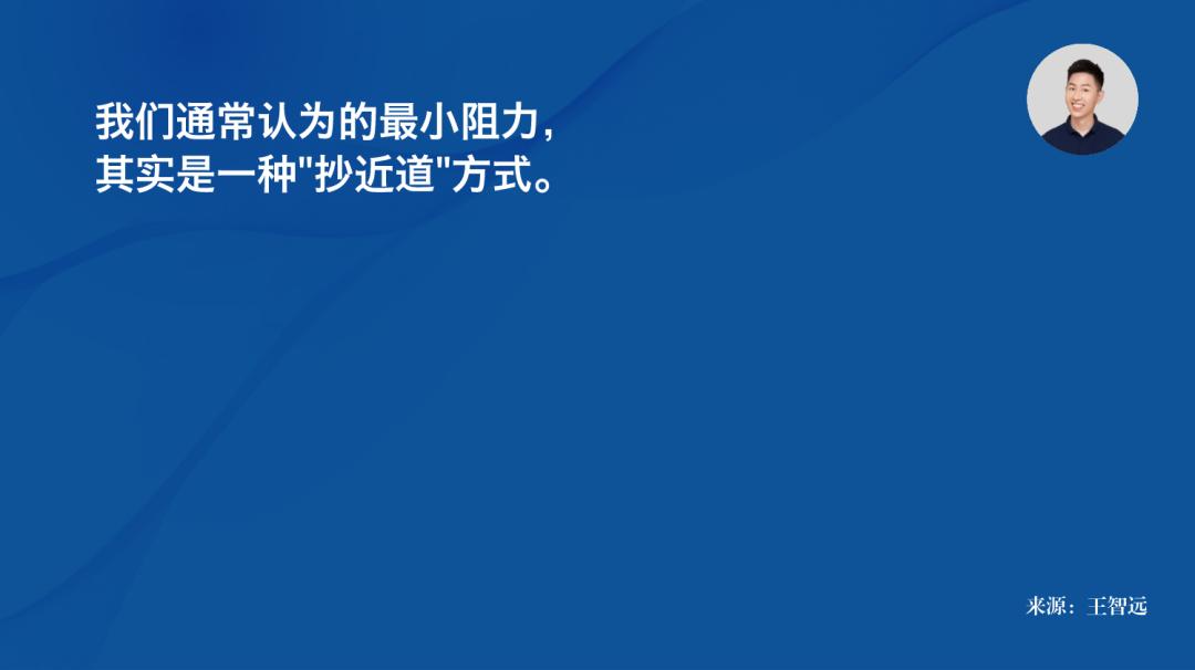 实际上,我也曾尝试过这样做,但最后发现,自己又陷入了新环境的"舒适氛围"中。经过认真的反思,我才意识到,我们通常认为的最小阻力,其实是一种"抄近道"。