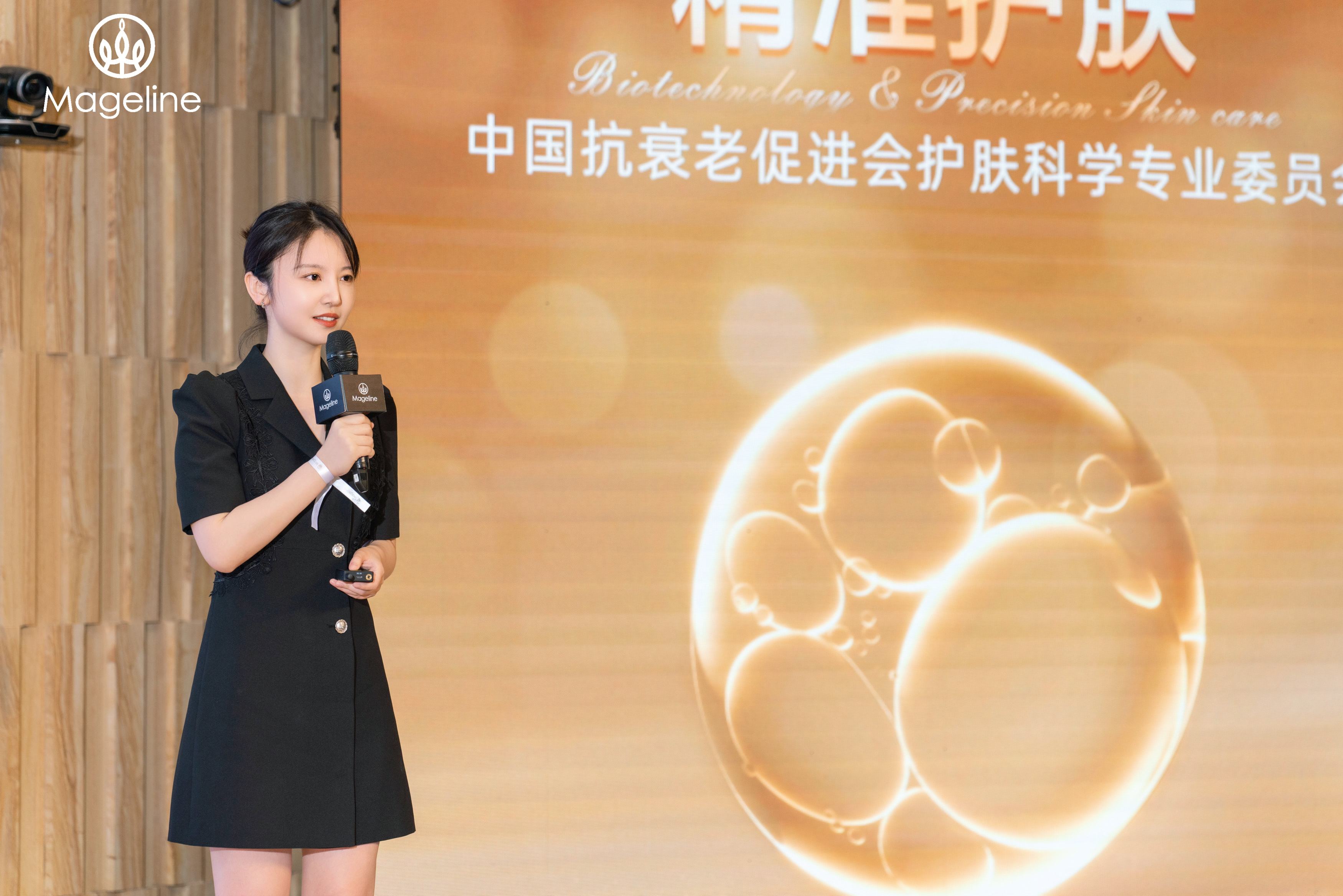 麦吉丽品牌科研团队代表——麦吉丽首席研发官、中国抗衰老促进会护肤科学专业委员会总干事杨帆先生分享了《从大米到化妆品,微生物的力量》的主题演讲。