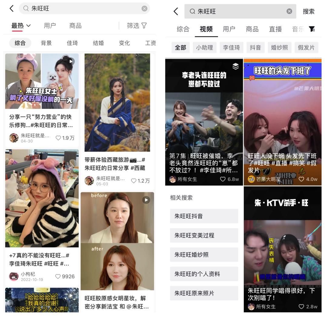 自去年“双11”后,朱旺旺开始从助理人设向独立女性人设过渡,变美日记、翻身逆袭、大女主等各类吸引女性用户注意力的标签贴在了朱旺旺身上,辅以各种八卦和趣闻,朱旺旺的热度一路飙升。