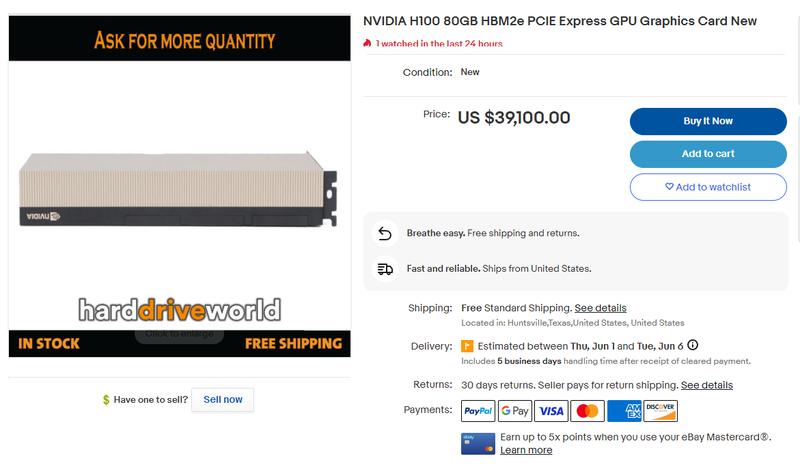 在美 国二手平台上,一张H100计算卡的售价为39100美金(22.5万人民币)