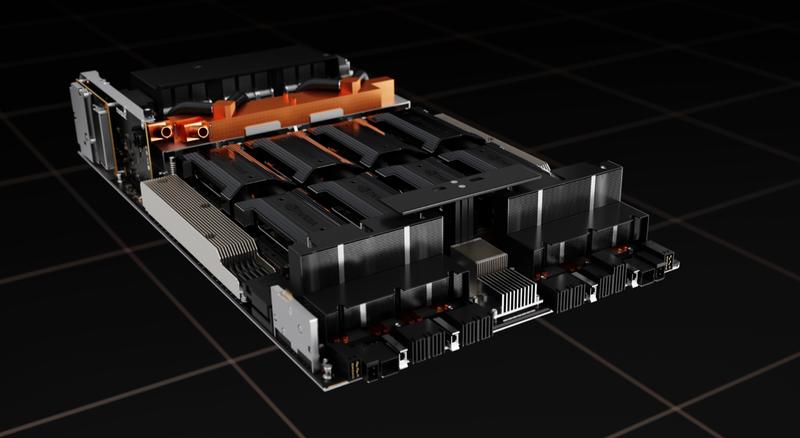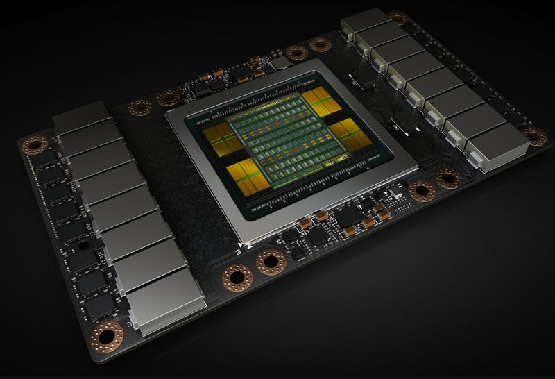 V100内部构造,可见密密麻麻的电容与显存颗粒
