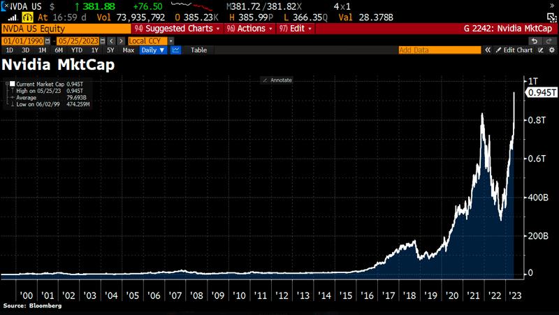 尽管一些游戏玩家对新显卡的性能持怀疑态度,但这并未阻碍NVIDIA的财务增长。根据其最新财报,NVIDIA在数据中心和游戏业务方面均展现出强劲的增长,推动了公司股价在盘后交易中大涨近30%,一度接近390美元/股,公司市值从7500亿美元跃升至9600亿美元。预计今天开盘后,它将成为美国股市值超过1万亿美元的第七大公司。