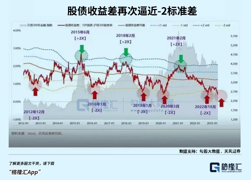 当前,股债收益差回到历史低点,跟2016年1月、2019年初、2020年3月底、2022年10月底极其相似。股债收益差逼近负值低点,表明股票相对于无风险利率的收益越好,也就表示股票越低估,投资性价比更高。