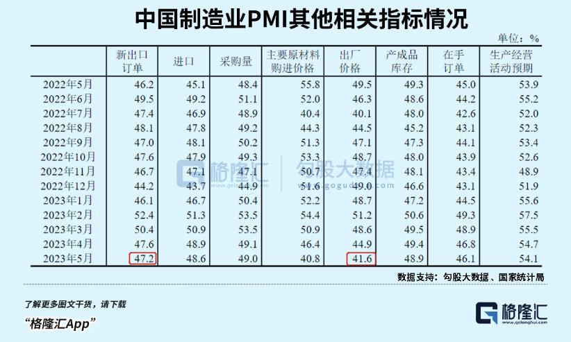 此外,5月主要原材料购进价格大幅下滑5.6个百分点,主要是因为全球大宗商品处于持续下降通道之中。5月出厂价格也仅有41.6%,创下多年新低 (刨除2022年7月的40.1%)。