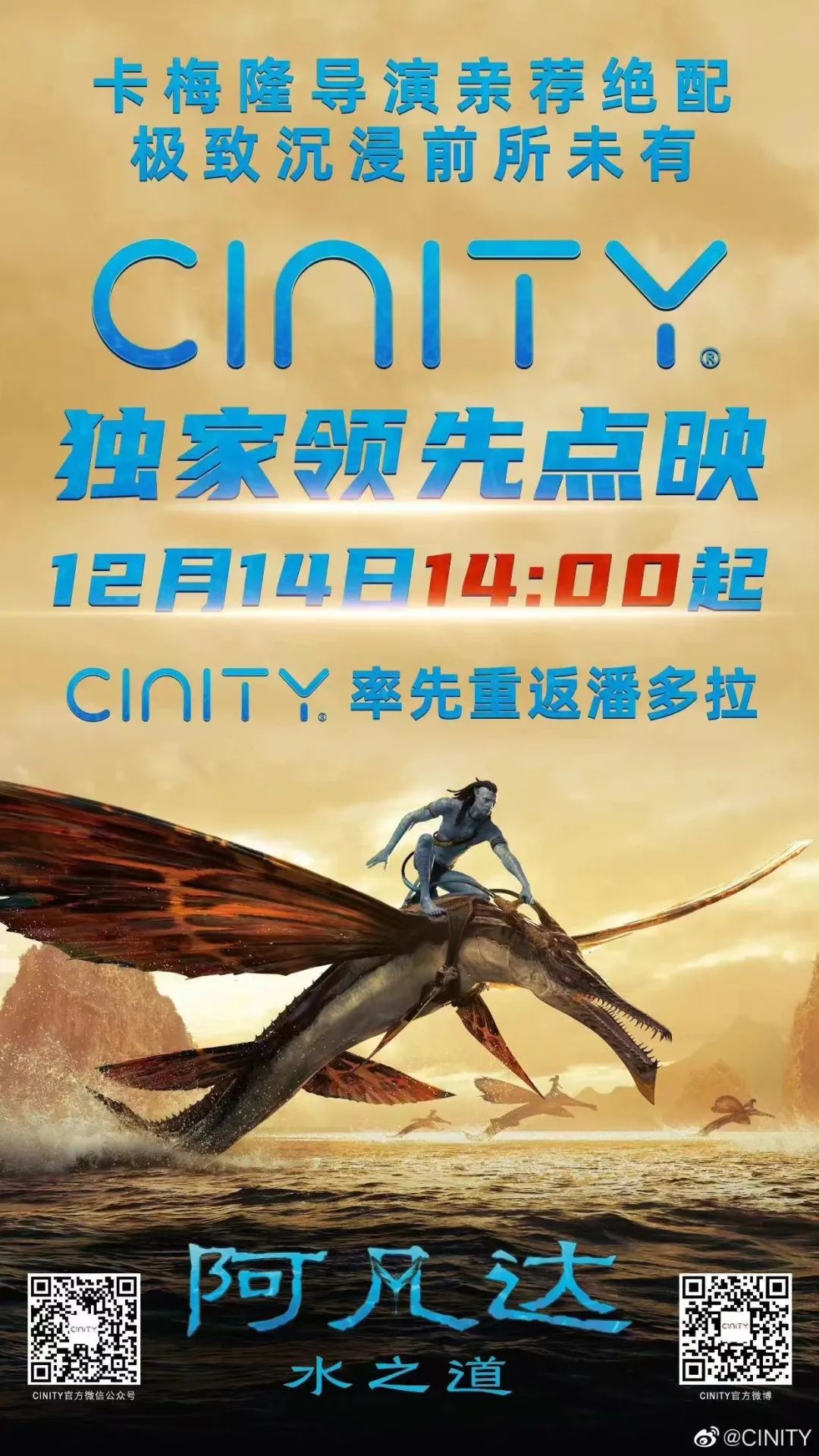 在去年末上映的《阿凡达:水之道》是2022年在中国内地观众期待度最高的一部好莱坞大片,而这部影片在定档后也罕见地选在中影CINITY影院进行独家时段点映,优先于IMAX、杜比视界等影厅抢到了内地的“首映权”。