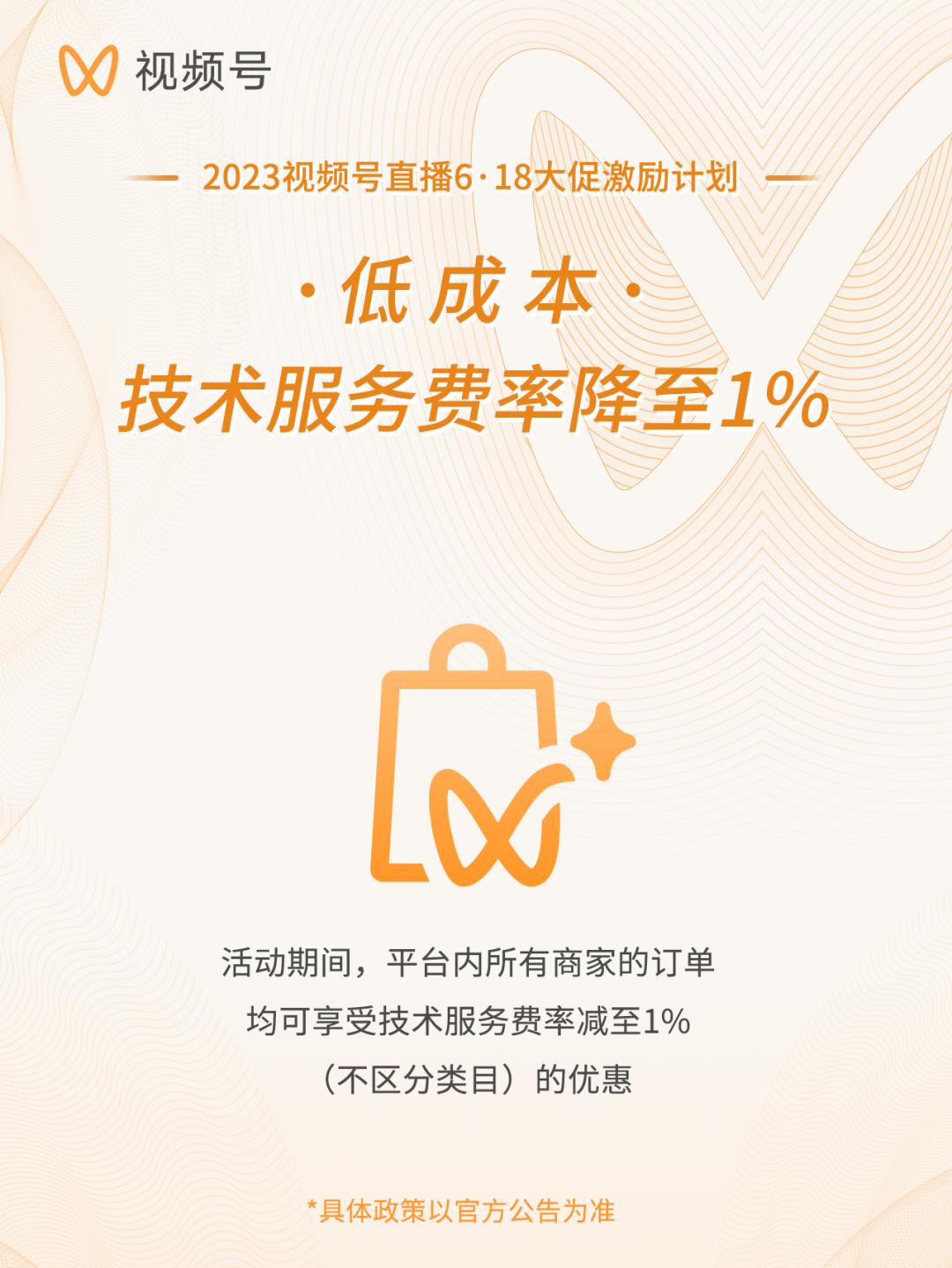 据今年视频号发布的6.18激励政策来看,其仍旧鼓励商家加大对于视频号直播的投入,并承诺平台内所有商家的技术服务费率将减至1%,大幅让利商家。同时,商家完成一定规模的销售额还可获得额外激励。