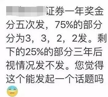 在金融圈,有一个约定俗成的规则——年终奖递延支付制度,大部分券商的年终奖会分成3-4年递延完成,第一年发放50%-70%。