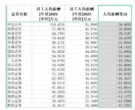 《券商2022年薪酬大盘点:中信证券人均薪酬83万居第一,兴业证券降薪45%降幅最大》,每日经济新闻