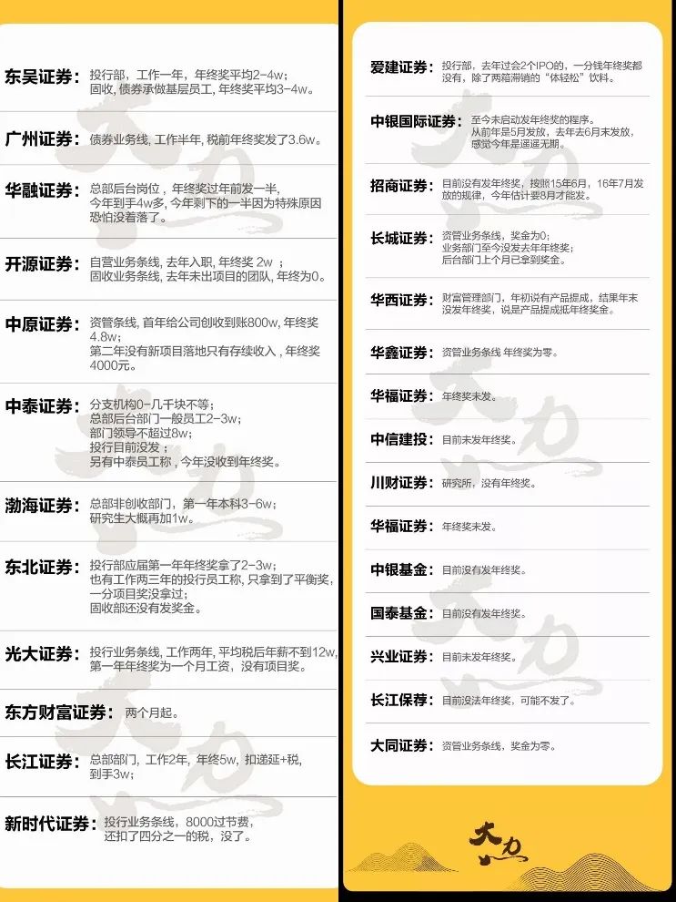 2018年时,知名财经博主、某内资券商投行部董事总经理@王大力如山,曾做过一则关于券商年终奖的盘点。