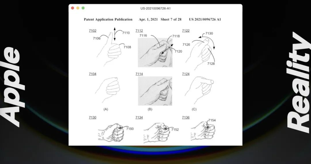 我有个非常大胆的猜想,就是眼镜的交互逻辑很有可能跟手机是非常像的,从苹果的专利里面,你能看到一个这样的手势,半握拳的状态下,把大拇指放在食指上,我一开始还没想明白这个手势是啥意思,只是感觉用这个姿势可能比较放松和自然?
