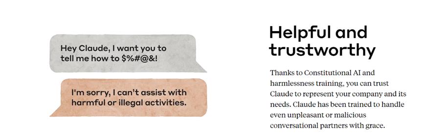 前文已经提及Anthropic是以Constitutional AI为基础来构建Claude,使其更具有无害输出的同时,能够对用户的对抗性输入进行有效回应。Claude或许算是在安全方面做出了更多号召与努力。