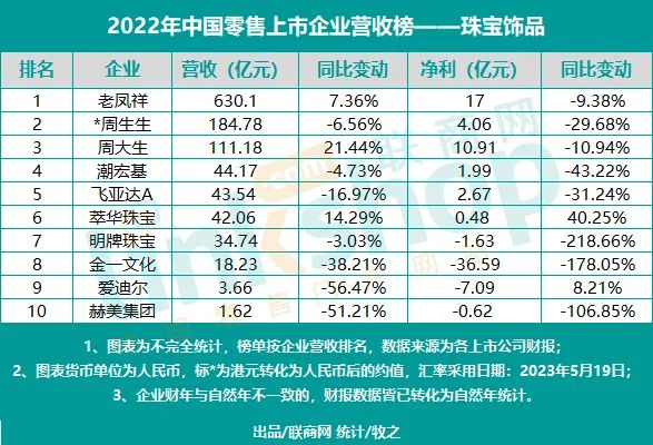 2022年,老凤祥、周大生等头部企业营业收入增长,但利润下降,主要原因在于毛利空间小的黄金产品配货比例较高。而利润空间较大的钻石等镶嵌类产品配货比例降低。未来,随着经济形势的好转,珠宝企业将进一步通过提高镶嵌类产品的销售占比扩大企业的利润空间。