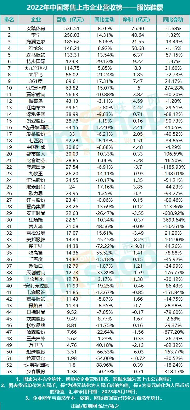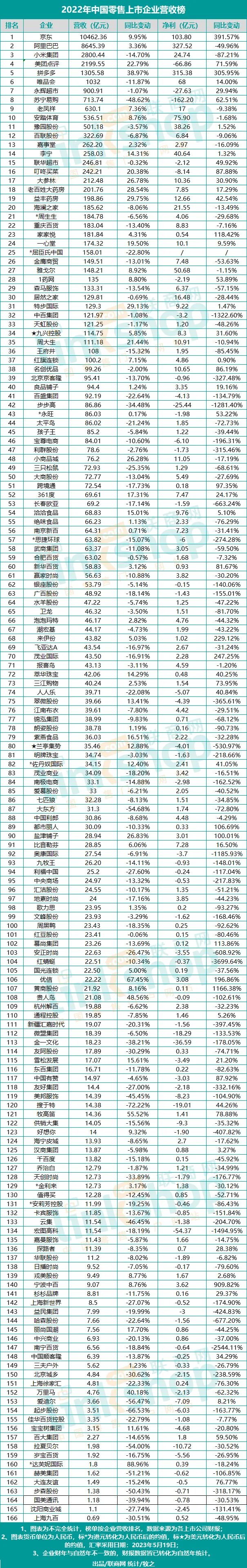 考虑到主营业务变更、退市、未出报表等因素,与2021年榜单相比,2022年榜单剔除了安德利、利福国际、星期六、摩登大道、华联综超、新华都、国美零售、金洲慈航等8家企业,新增了利福中国、思捷环球,戎美股份、牧高笛、嘉曼服饰、叮咚买菜、卫龙、紫燕食品、泡泡玛特等以前新上市和以前遗漏的9家企业。