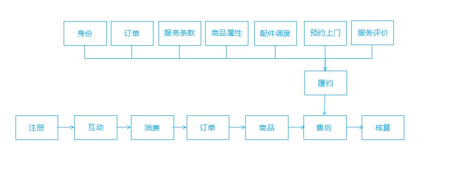 那么,就需要对不同用户采取不同的履约方式。以大型车辆等耐用品的售后为例,涉及到就是一整套复杂的管理流程,需要了解用户身份、订单情况、服务条款、商品属性、配件调度、预约上门和服务评价等信息。