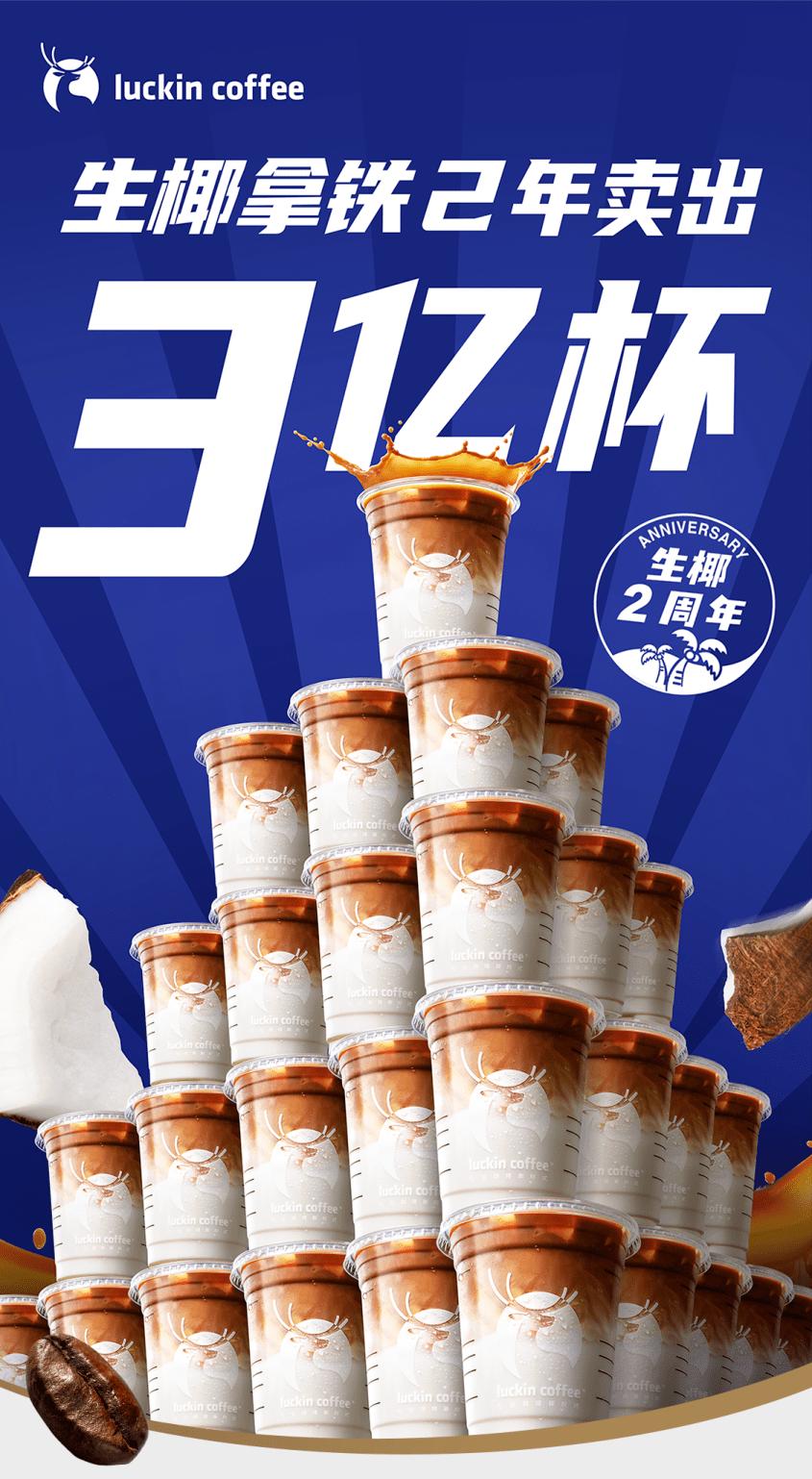 2023年4月3日,生椰拿铁两周年,销量突破3亿杯。图源:瑞幸官方微博