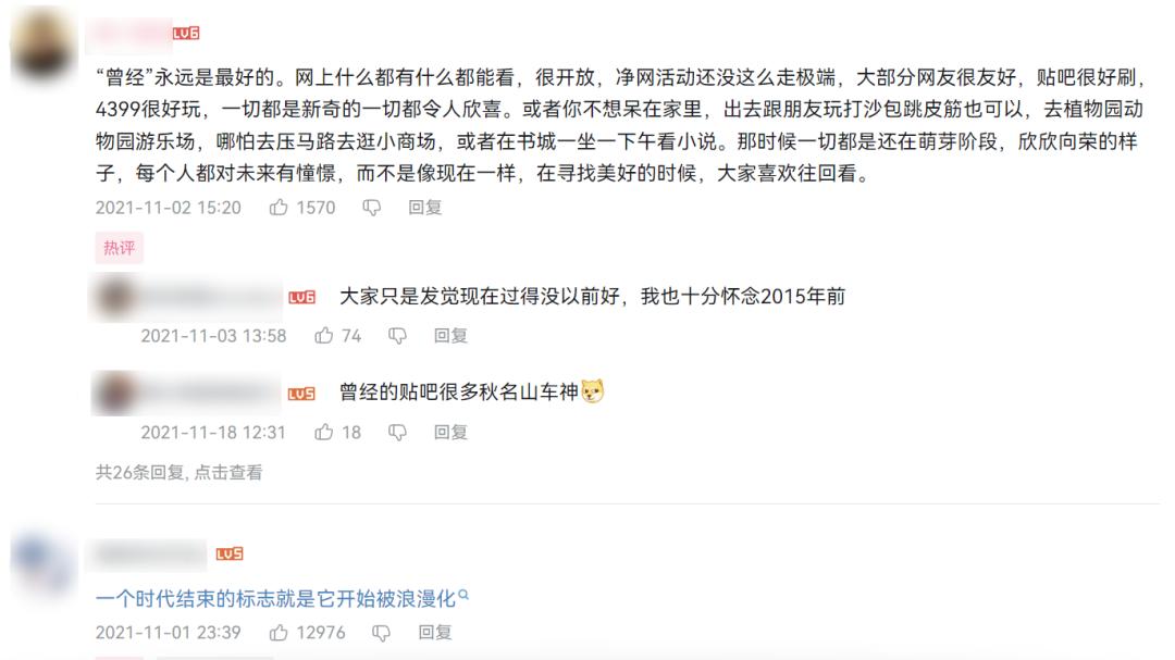有人会在弹幕里说着自己曾经逃课上网、在评论区回忆与同桌的青涩时光。